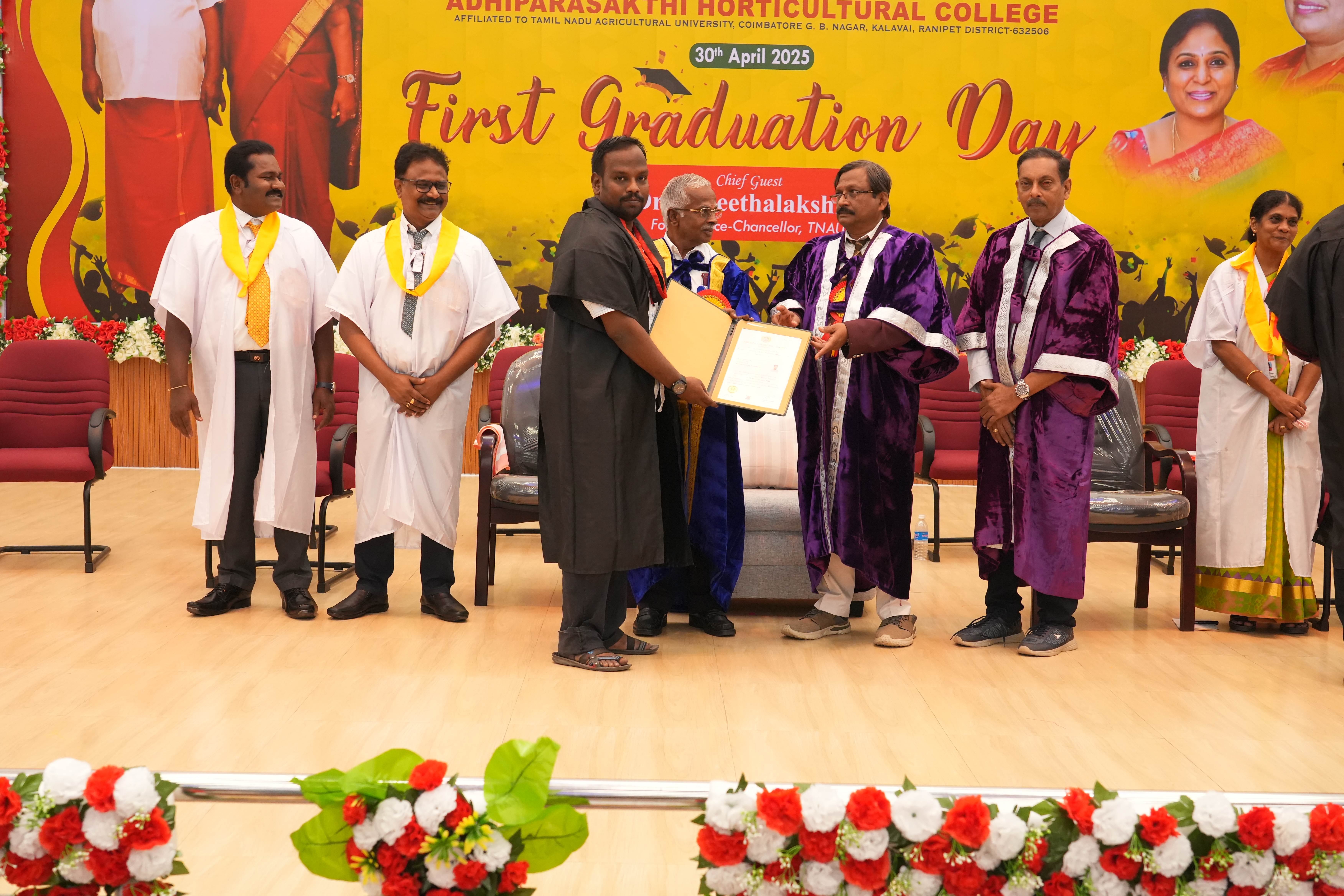 1. Adhiparasakthi Horticultural College Affiliation : G.O.(Ms) No.176. Dated: 22.08.2015 2. Excellent infrastructure 3. Quality Horticultural education by highly qualified & dedicated teaching faculty 4. Professional teaching through audio visual aids 5. Lectures by specialists from various Agricultural Universities/Central Institutions 6. Student Placement by Campus Interview 7. Well-equipped modern laboratories 8. The College has separate wetland, garden land and dry land crops 9. Well-resourced library with more than 10,000 books 10. Well established veterinary unit comprising (Cattle,Goat,Poultry&Piggery) 11. Centralized computer laboratory with 24hrs internet facility 12. Established orchard with major and minor fruits, medical plants garden and landscaping 13. Modernized mist chamber, shadenet, glass house, mushroom unit, vermicomposting unit, mineral water unit,rain water harvesting structures, sewage water treatment and recycling plant and forage unit are added facilities available 14. Expansive outdoor play area, indoor games hall, gym and open auditorium 15. Crop cafeteria and nutrition garden 16. Separate hostel facilities for boys and girls with telephone, internet facilities & Photocopier, Mess and Canteen 17. Transport facilities from the college to hostel, orchard and study tours 18. Special Coaching on bank exams 19. Driving class including license for all students 20. Coaching for ICAR fellowships and civil service exam 21. Special Coaching classes for Hindi and English