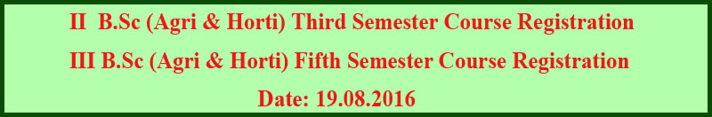 1. Online application for UG admission is Closed. 2. Counseling Student Online Payment Link 3. B.Sc (Agri&Horti) Final Practical Examination Schedule 4. Diploma in Agriculture Final Practical Examination Schedule 5. Interview for Diploma Students.Date-06-07-2016.